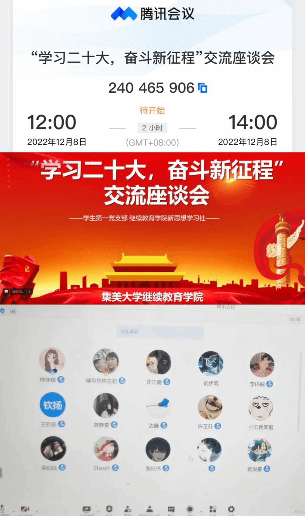 12月8日,我院新思想学习社召开“学习二十大,奋斗新征程”交流座谈会,指导老师林立君主持、学生党员以及相关学生代表参会。