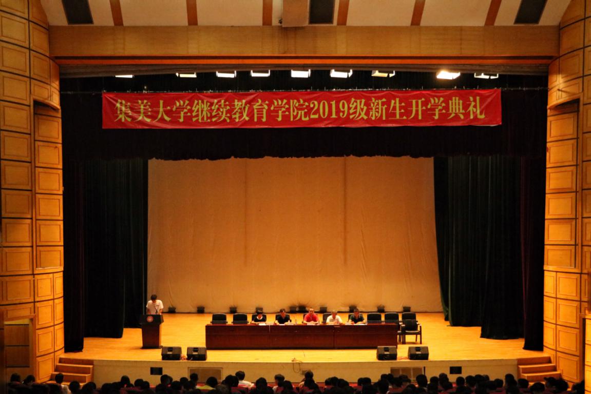 9月17日上午,继续教育学院在古龙大礼堂举行2019级新生开学典礼。院长叶跃前代表学院致欢迎词,副院长修明介绍学院的教学管理情况,自考办黄亚忠介绍学院学生的学习管理及教务管理情况,学院党委书记陈建民对新生提出“努力学习、脚踏实地、全面发展”的希望。