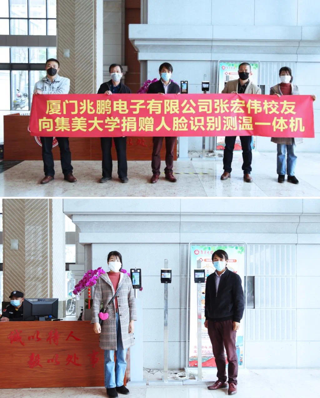 厦门兆鹏电子有限公司总经理、软件技术05级张宏伟校友把第一款自己研发的人脸识别测温一体机(共3台)捐赠给母校。