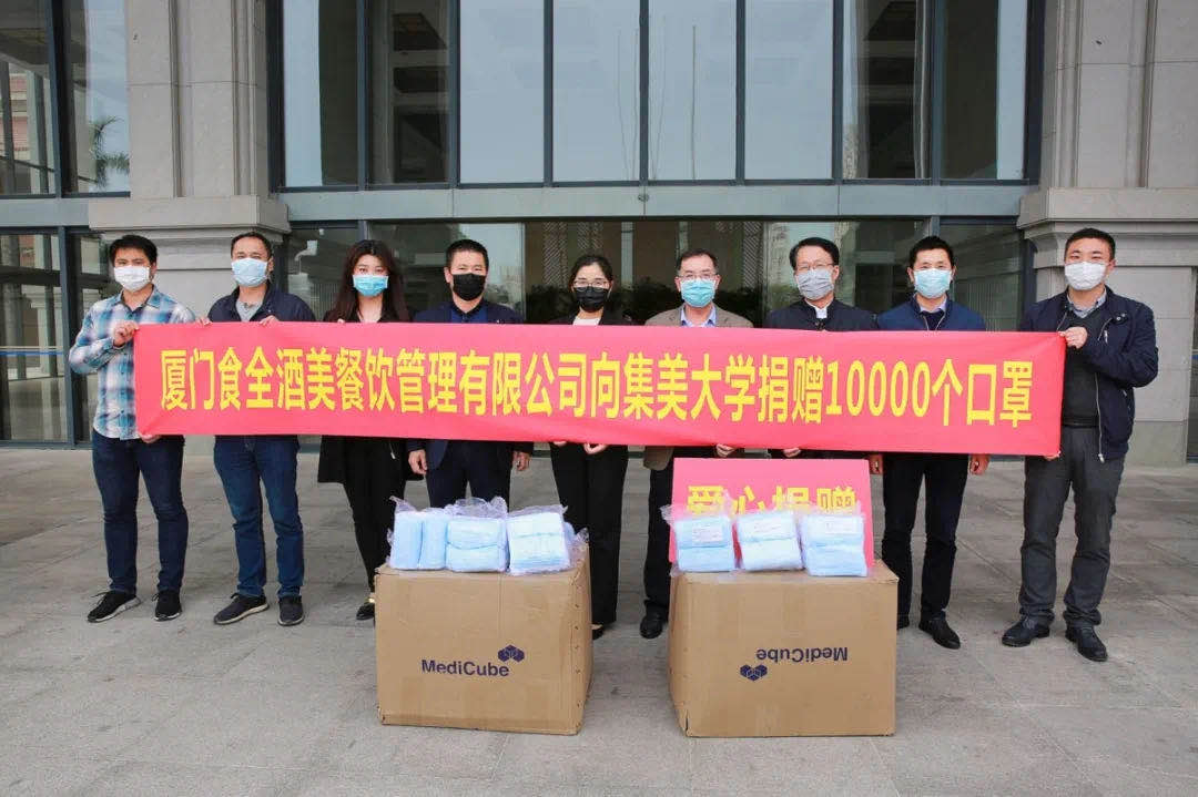 在营销04级校友的引荐下,厦门食全酒美餐饮管理有限公司总经理洪旸向集美大学捐赠一次性口罩10000个,其中向学院定向捐赠口罩800个。