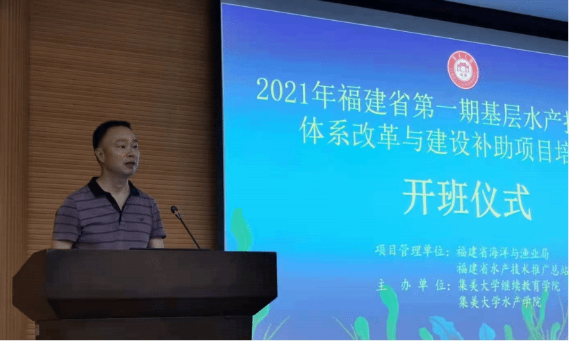 7月20日上午,2021年福建省第一期基层水产技术推广体系改革与建设补助项目培训班举行了开班仪式。此次培训班由集美大学继续教育学院和水产学院承办,约180多名水产技术人员报名参加培训,分三期举行。