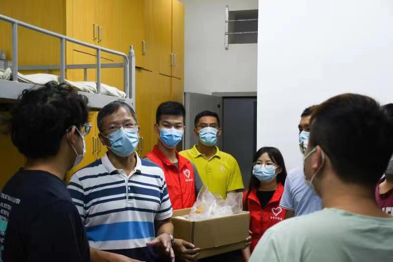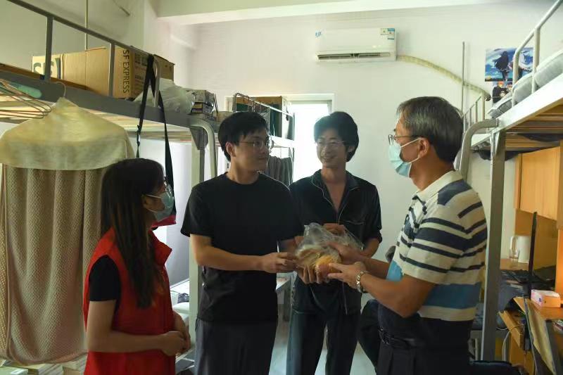 中秋佳节,曹敏杰副校长深入学院检查指导工作,前往宿舍看望学生,了解疫情防控期间学生学习、生活等情况,代表学校送出佳节的祝福和节日礼物,随后慰问了参加志愿服务的党员、学生志愿者。曹副校长还检查了校区疫情防控、食堂餐饮、后勤保障等等情况,有针对性地提出了指导意见,要求大家共克时艰,筑牢疫情防线,度过和谐、安全的节日。