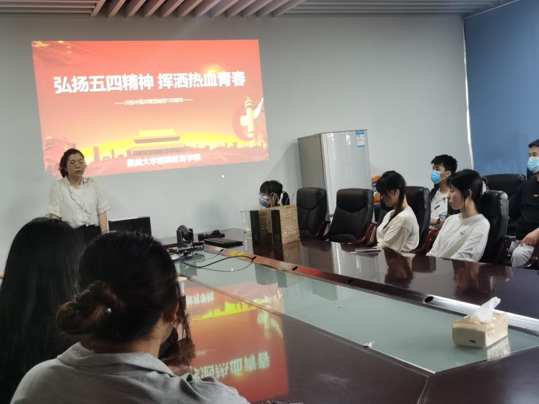 为庆祝中国共青团成立100周年,弘扬五四精神,增强学生的爱党、爱国、爱团、爱校之情,4月27日下午,根据学院党委的号召,继续教育学院团委组织开展了“弘扬五四精神 学习团史”座谈会,学院社团指导老师徐彤及部分团员学生代表参加了座谈会。