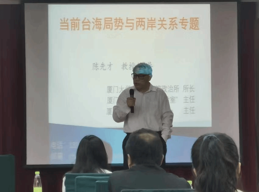 近日,学院邀请厦门大学陈先才教授作题为《当前台海局势与两岸关系》专题辅导报告。学院全体教职工聆听了专题报告。