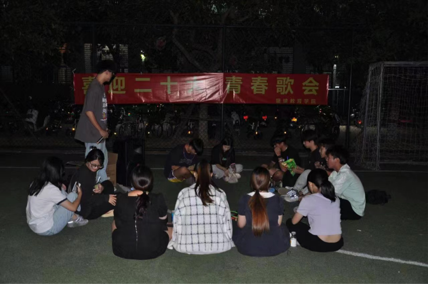 活动伊始,音乐响起,同学们随着活动气氛载歌载舞。一阵阵纯真嘹亮的歌声,化作跳动的音符。大家用优美的歌声表达对大学生活的热爱,晚风中弥漫着青春的味道。