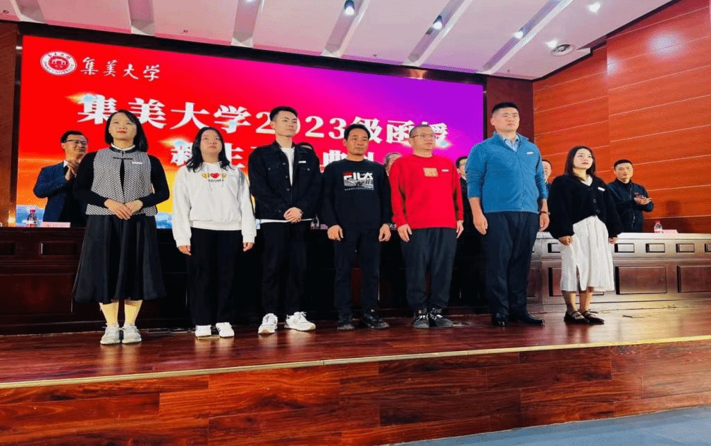 新生代表黄国文从个人的成长经历向全体新生分享了提升学历及深造学习的重要性,表示将珍惜难得的学习机会,勤奋努力,学以致用,将学历提升转化为能力提升,为个人职业生涯奠定坚实基础。副院长闫长健介绍了学校学籍管理等相关规定和学习要求。与会领导现场为新生代表佩戴了校徽,祝贺他们成为集大学子的一员。