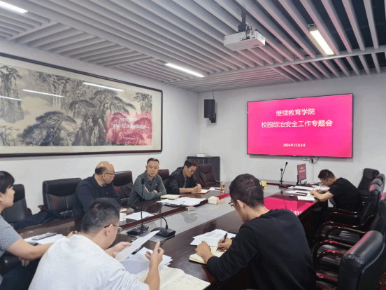 12月4日下午,继续教育学院召开校园综治安全专题会议,综合治理工作小组成员参加会议。