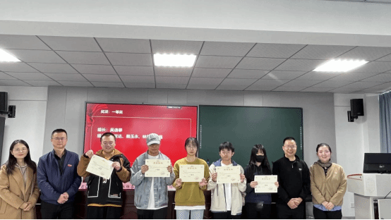 最后,学院领导及老师为本学期优秀学风建设的学习小组及个人颁发荣誉证书并合影留念。
