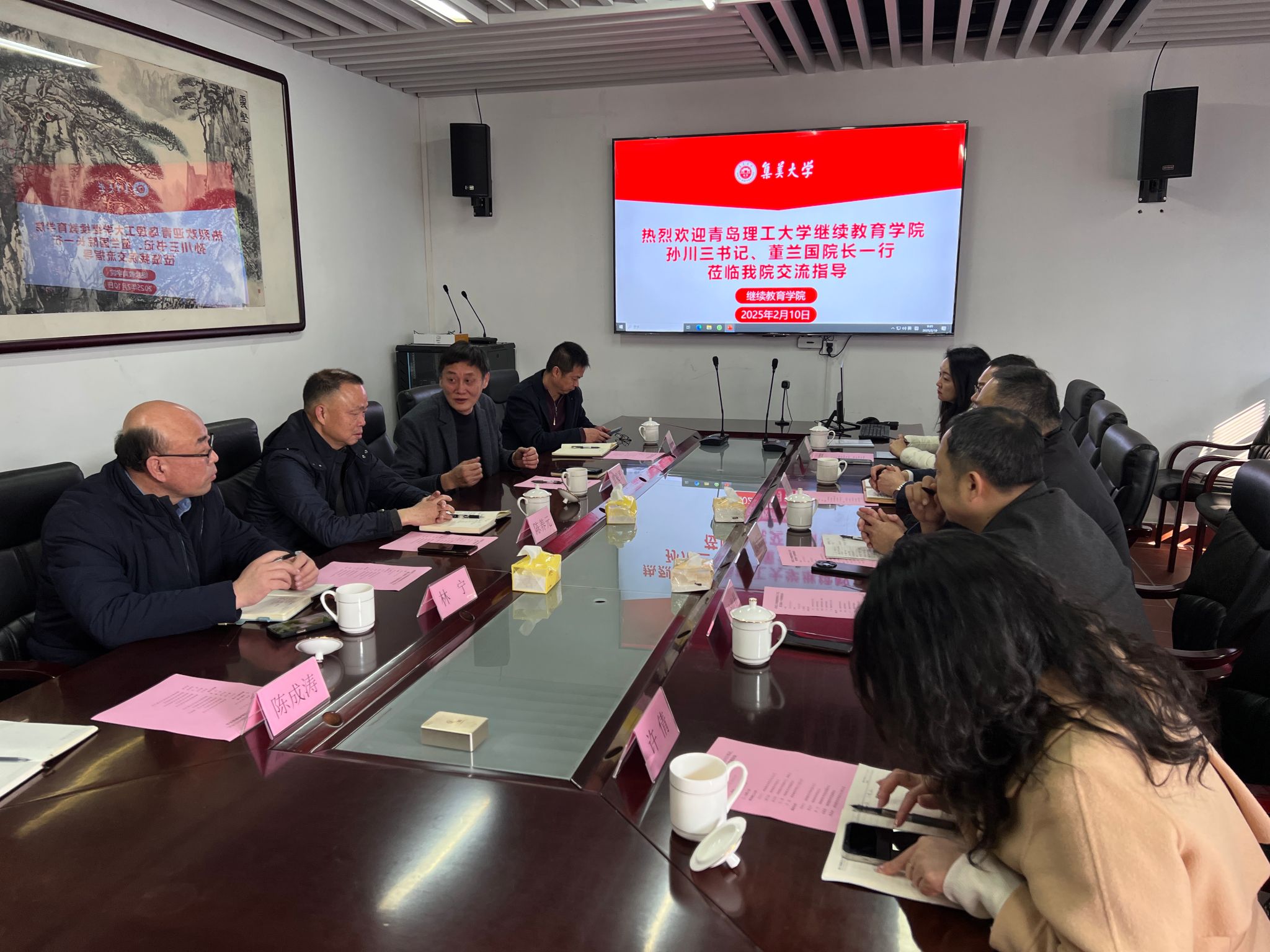 2月10日上午,青岛理工大学继续教育学院党总支书记孙川三、院长董兰国一行赴我院调研交流。我院党委书记陈养元、院长曹兆平、副书记林宁、副院长林雄喜及相关科室负责人参加座谈会。