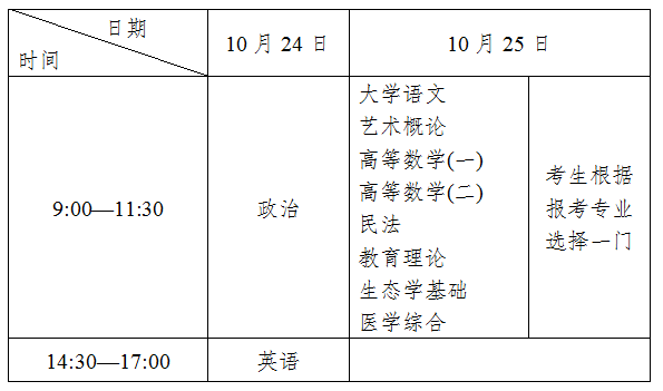 2.专科起点升本科招生专业所对应的考试科目按《专科起点升本科专业与统一考试科目对照表》(教学厅〔2017〕12号文)执行。