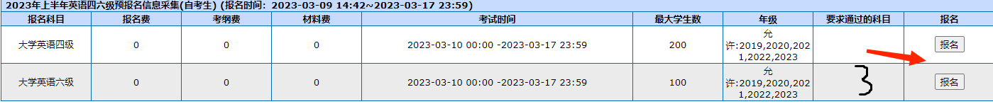 1.本次本院四六级预报名信息采集名额有限,先填写资料者先得,无预报名者无法进行正式报名。