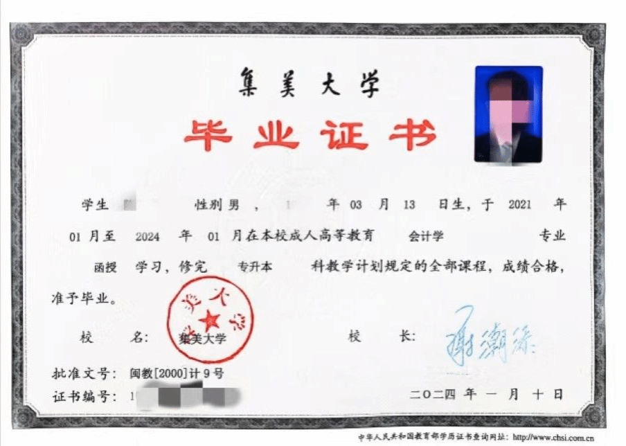 学生修满本专业教学计划规定的学分,成绩合格,符合毕业条件者,由集美大学颁发经教育部电子注册的成人高等教育毕业文凭,符合学士学位授予条件的本科毕业生,授予学士学位。